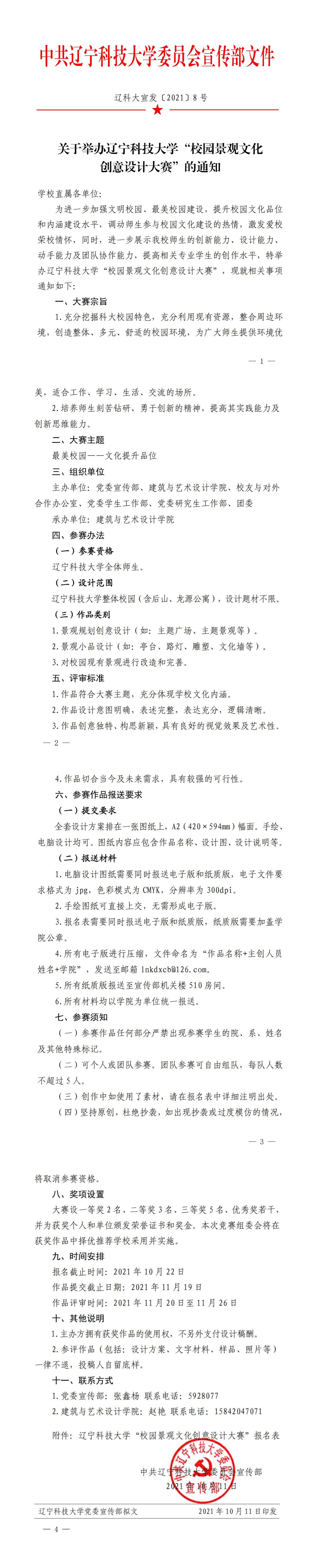 關于舉辦遼寧科技大學“校園景觀文化創意設計大賽”的通知