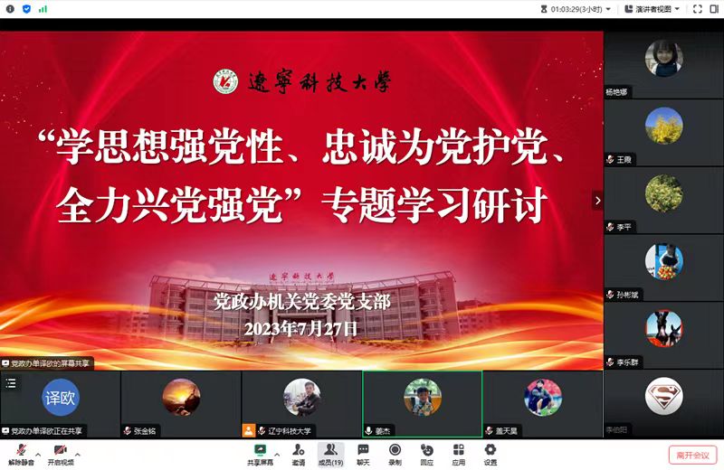 7月27日,黨政辦機關黨委黨支部以線上方式召開黨員大會,集中1天的時間開展專題學習。會議由黨支部書記李寧主持。校黨委書記李平以普通黨員身份參加了會議。