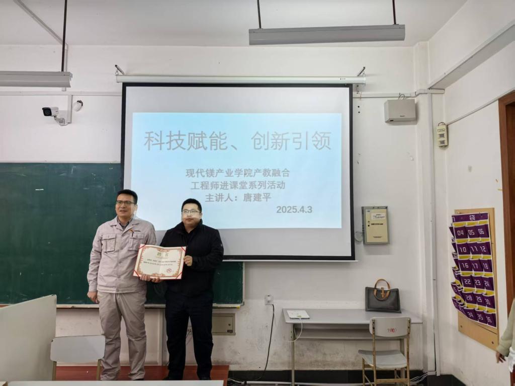 為提高學生綜合素質,提升學生就業競爭力,讓學生更加了解企業人才需求現狀及如何更好的在工作學習中實現學以致用。4月3日,材冶學院無機系開展現代鎂產業學院產教融合工程師進課堂系列活動,邀請我校優秀校友鞍鋼實業集團冶金機械有限公司經理唐建平走入卓無機2022級的課堂,進行“科技賦能、創新引領”的專題講座。材冶學院無機系和冶金系相關教師參加了活動。
