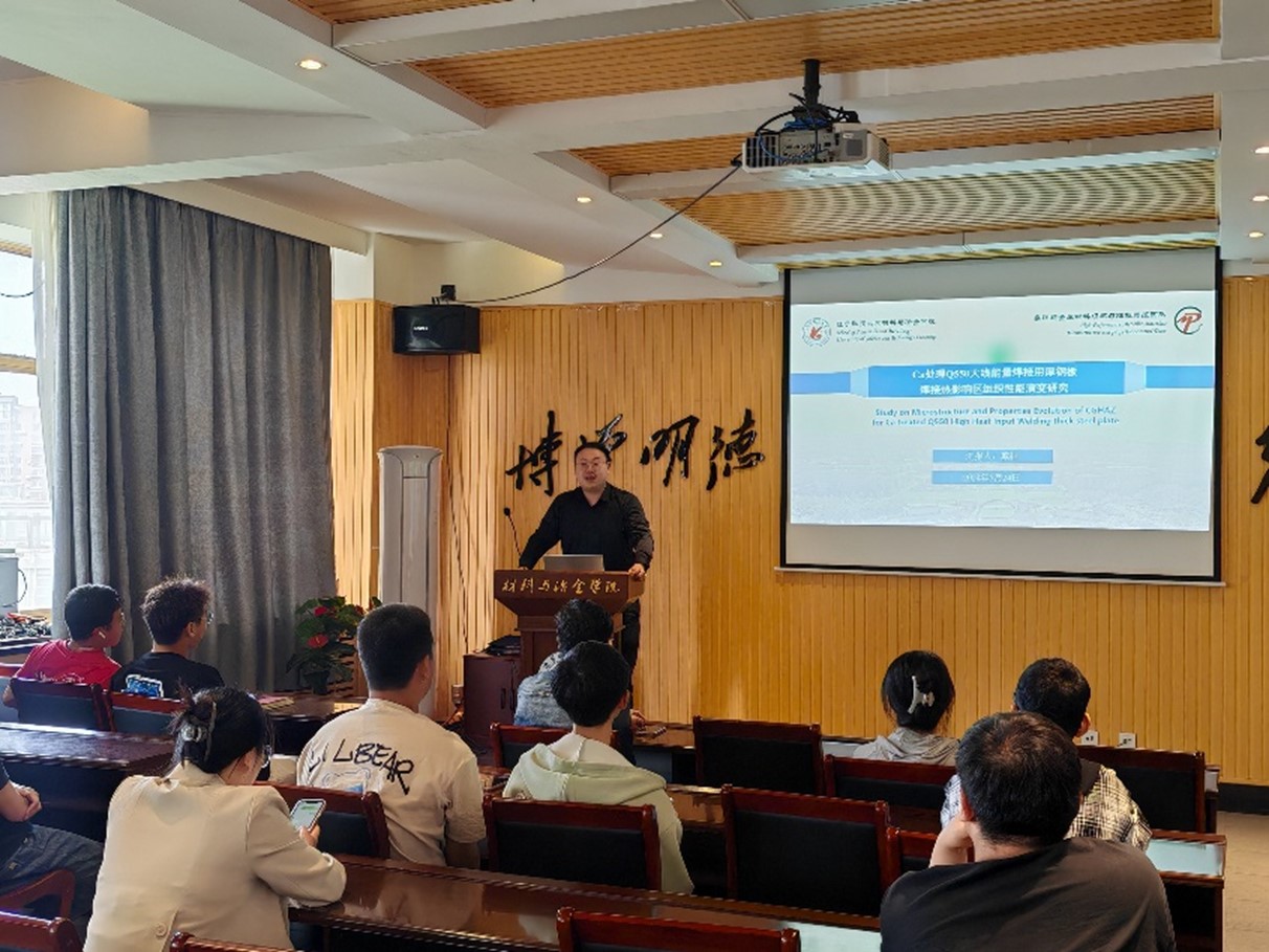 戚桓博士報告主題為“Ca復合處理大線能量焊接用鋼焊接熱影響區組織性能演變研究”。主要分享了自己目前的科研成果:以Ca復合脫氧的大線能量焊接用Q550厚鋼板為例,對不同焊接熱輸入量條件下Ca處理鋼的CGHAZ組織性能演變進行了深入研究,揭示了Ca型夾雜物的演變規律,以及其對貝氏體相變的影響。