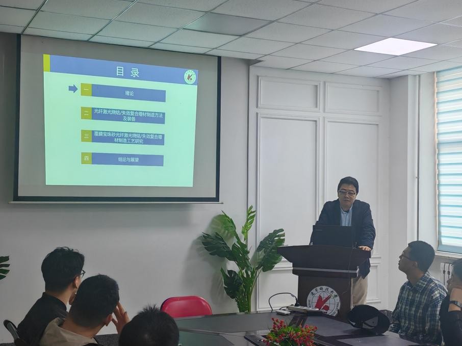 薛鎧華教師報告主題為“鑄造用覆膜粉體光纖激光燒結/失效復合增材制造工藝及裝備研究”。本報告深入探討了選擇性激光燒結技術的應用、優勢及特點。選擇性激光燒結是一種基于粉床的激光增材制造技術,其具有材料利用率高、工藝流程短、可制成復雜形狀零件等顯著優勢,近年來在砂型激光增材制造領域得到廣泛應用。隨著我國鑄造行業的不斷升級、提效,鑄件尺寸不斷增大,常規SLS技術在加工幅面、效率、強度等方面難以滿足行業需求。本研究為突破常規SLS法中低激光功率、窄線寬掃描導致的加工效率低的瓶頸,并合理地平衡制件精度與制件初強度,著重研究基于覆膜粉體的光纖激光燒結/失效復合的增材制造方法及其配套裝備、成形工藝及材料,并與傳統鑄造技術相結合,進行工程應用實例的驗證。