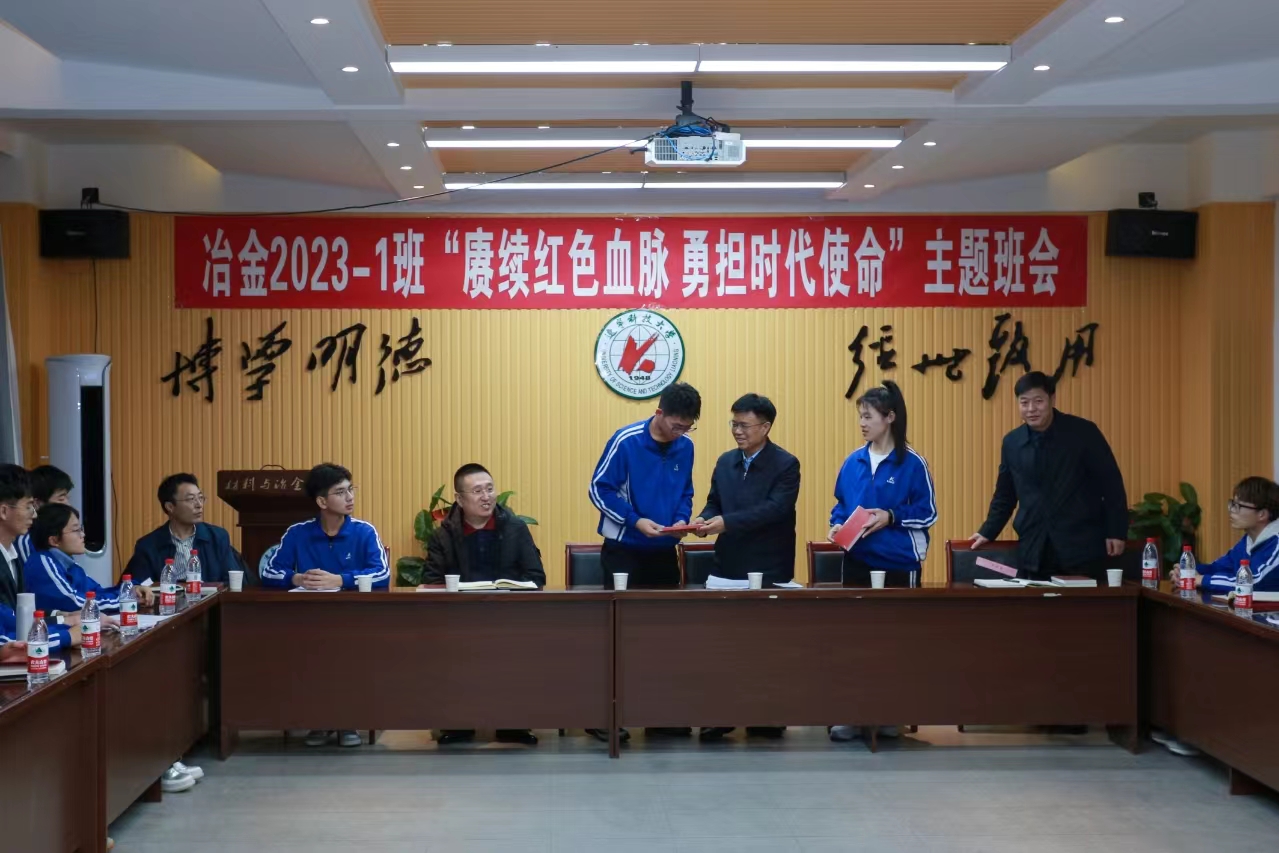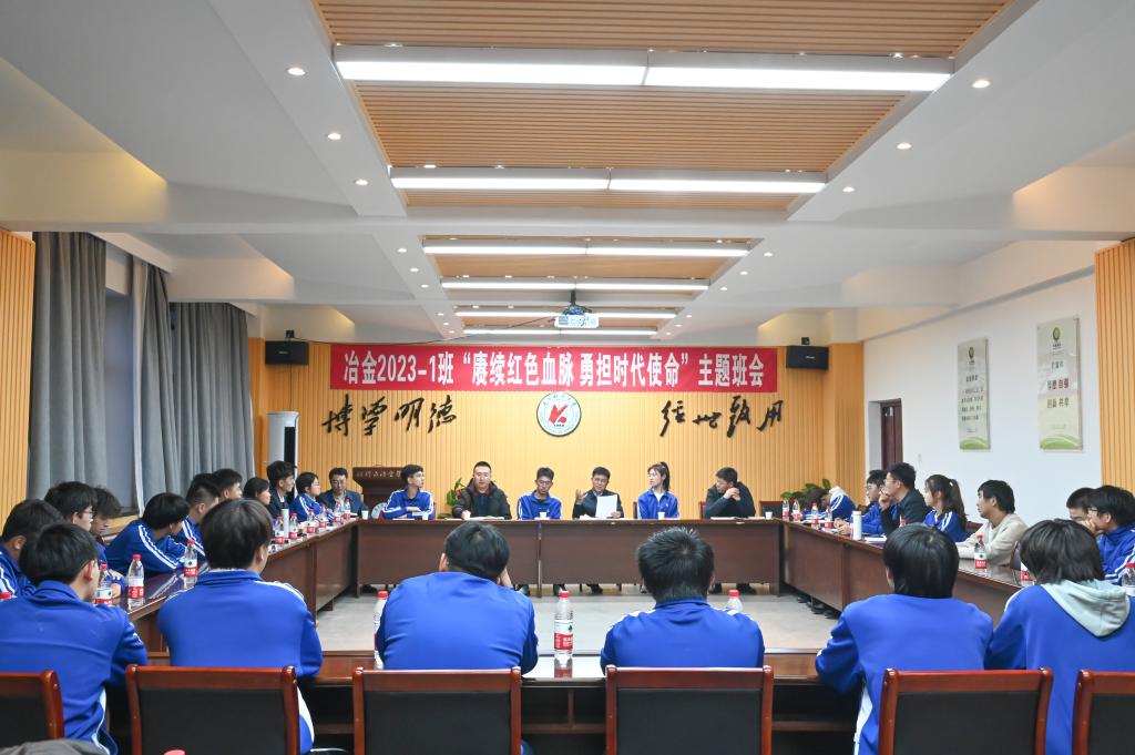 11月27日下午,材料與冶金學院冶金工程2023-1班召開“賡續紅色血脈 勇擔時代使命”主題班會,校黨委書記李平應邀出席班會,學校黨政辦公室主任李寧、材料與冶金學院班子成員、輔導員與班級全體同學一同參加班會。
