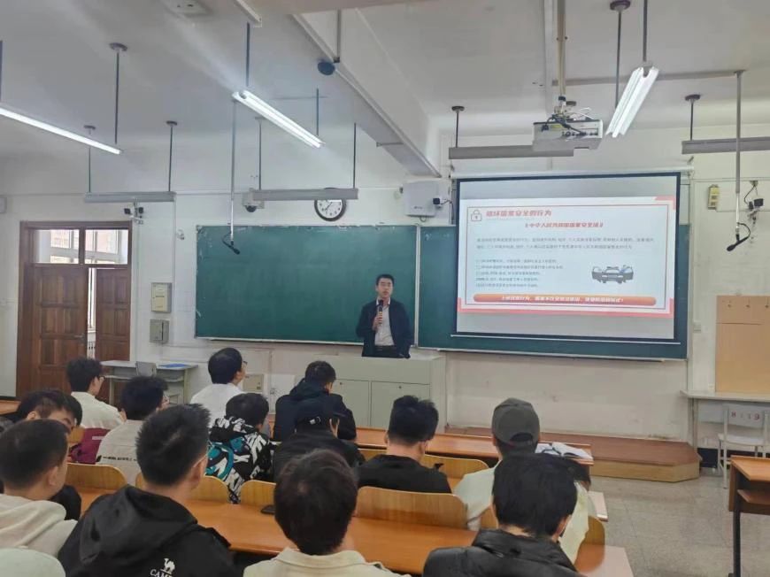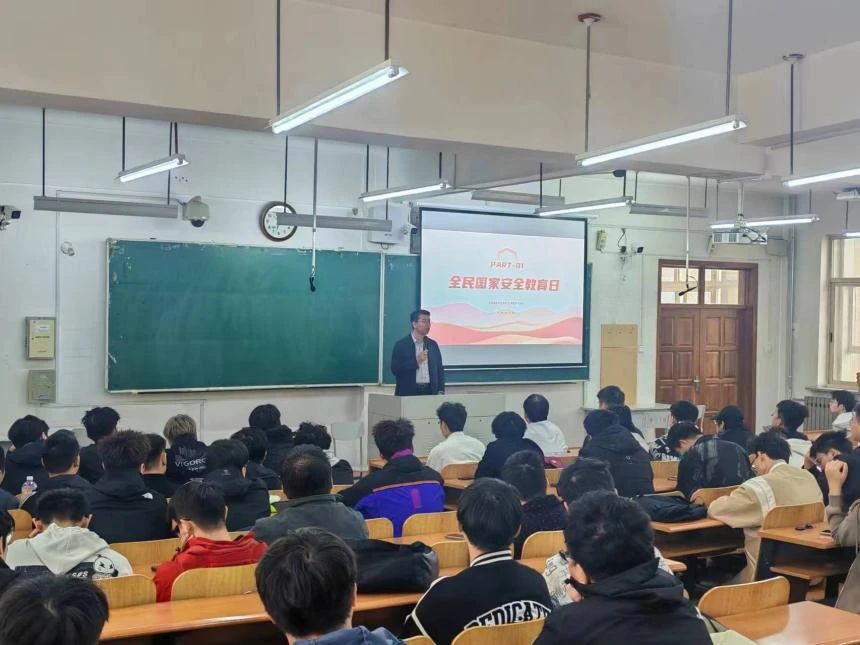 在互動環節,同學們圍繞課程設置、科研實踐、就業前景等話題踴躍提問,艾英華結合行業發展趨勢與人才培養經驗逐一解答。最后,適逢全民國家安全教育走深走實十周年之際,他通過解讀國家安全內涵、剖析16個重點領域安全形勢,系統開展國家安全主題教育。他重點闡述了大學生在維護網絡信息安全、防范意識形態滲透中的責任擔當,并引導同學們在日常學習生活中提升保密意識、規范網絡言行。