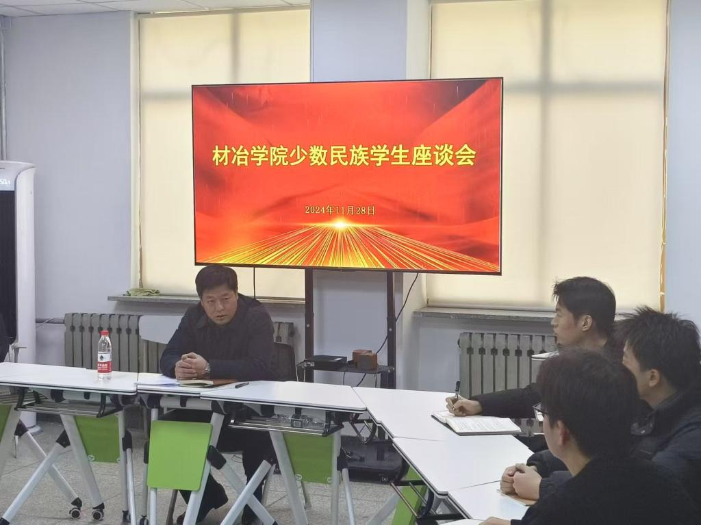 11月28日,材料與冶金學院在明賢樓A234召開少數(shù)民族學生座談會。此次座談會旨在加強學院與少數(shù)民族學生之間的溝通與交流,深入了解學生的需求與困難,促進各民族學生間的團結友愛。學院黨委書記劉彥國出席座談會,并與少數(shù)民族學生代表親切交談。劉彥國認真傾聽了學生們在學習、生活等方面的情況匯報,詳細了解了他們在學業(yè)進展、文化適應、生活習慣等方面遇到的困難與挑戰(zhàn)。