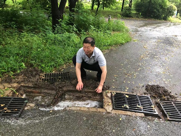 由于近日雨水不斷,學校后山排水量激增,環山路上排水篦子堵塞,雨水順著道路流入校園,影響師生們的正常生活。6月30日早晨材冶學院張少勇和王洪斌老師及時發現了這一情況,兩位老師徒手掀起鐵篦子,用半個多小時的時間將排水溝里的淤泥清除,使排水通道恢復流暢。