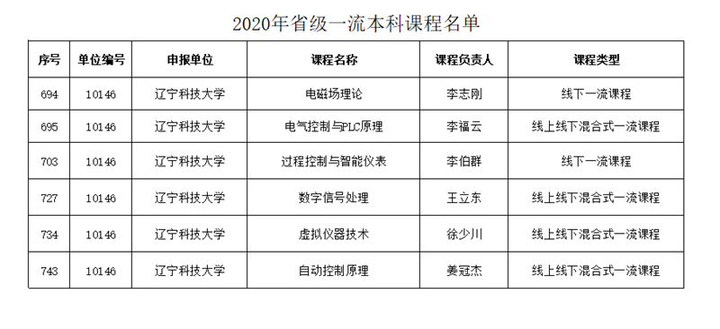 2021年1月8日,由《遼寧省教育廳辦公室關(guān)于公布 2020 年省級(jí)一流本科課程名單的通知》(遼教辦【2021】5號(hào))獲悉,電信學(xué)院6門(mén)課程入選遼寧省一流本科課程。