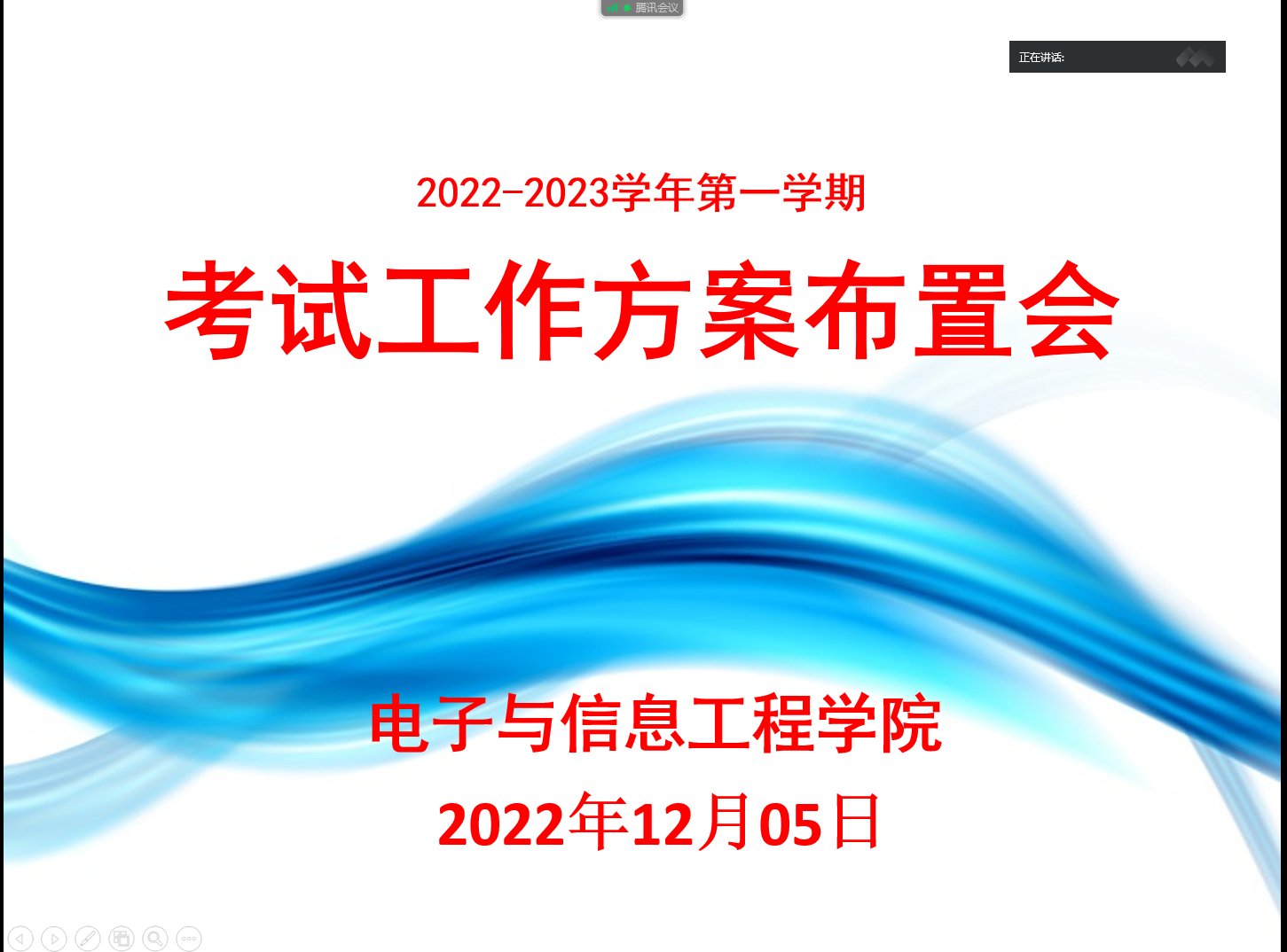 2022年12月5日晚,電信學院黨政領導班子開會學習、研究了學校下發的2022-2023學年第一學期考試工作方案,并結合學院疫情防控及學生返校情況制定了考試工作落實方案,明確了主考、考試聯絡員、命題教師與監考等人員的責任。會后學院又召集系主任、中心主任召開布置落實會,就命題要求、考試方式、考試平臺的使用、監考須知、線下考試與線上考試注意事項等內容進行傳達與布置。學院各系部于12月6日通過教研活動等形式對學校、學院關于考試的工作的要求進行傳達。