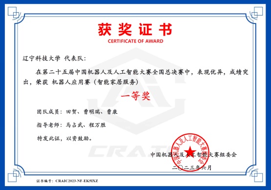 2023年第25屆中國機器人及人工智能大賽總決賽于6月13日-16日在海南舉行。我校智能制造工程技術研究中心組建了由控制科學與工程專業學生田賀、曹明瑞和曹康組成的參賽隊伍,在指導老師程萬勝教授、馬占武講師的指導下,歷經校賽、省賽,最終在全國總決賽中獲得機器人應用智能家居服務賽一等獎。