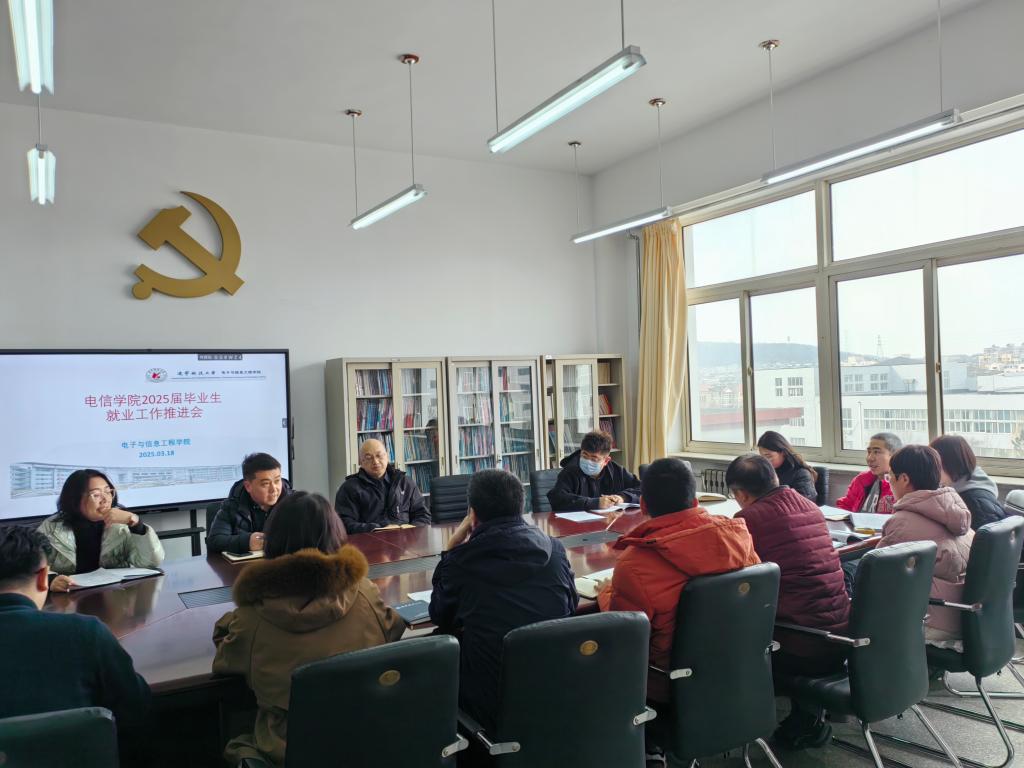 3月18日,遼寧科技大學電子與信息工程學院于博聞樓310會議室召開2025年就業工作推進會。學院領導班子成員、各系主任及全體大四輔導員參加。