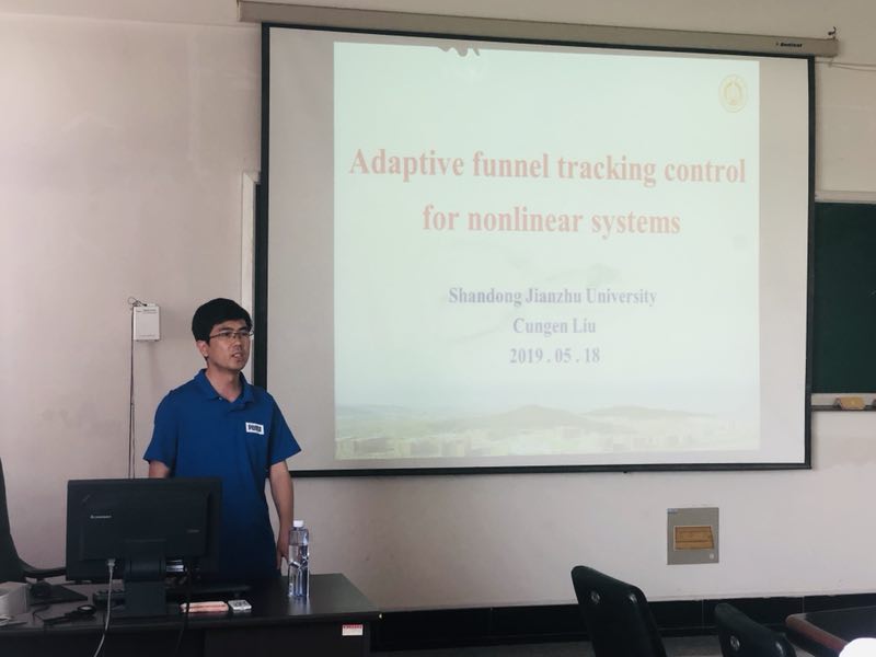2019年5月18日,應電信學院邀請山東建筑大學劉存根副教到電信學院進行學術交流,在交流會上劉存根副教授為與會師生作了題為“Adaptive funnel tracking control for nonlinear systems”的學術報告。