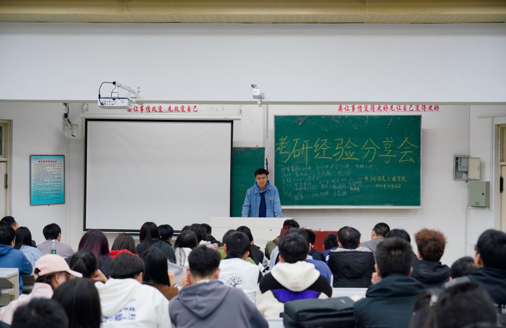 為幫助學生認清當前考研新形勢,明確考研目標,掌握相關考研技巧,增強考研信心,電信學院于4月26日在博聞樓五合教室召開考研經驗分享會。此次活動由19級考研成功的學生代表主講,20、21級準備考研學生共計200余人參加會議。