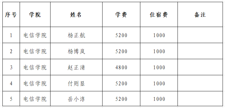 為貫徹落實國家和遼寧省有關資助政策,幫助孤兒等家庭經濟特別困難學生順利完成學業,根據《遼寧科技大學本科生學費和住宿費減免管理辦法(試行)》文件精神,經學生自主申報,學院對提交材料進行初審,報送學校復審,現就電信學院 2023— 2024 學年學費(住宿費)減免名單公示如下: