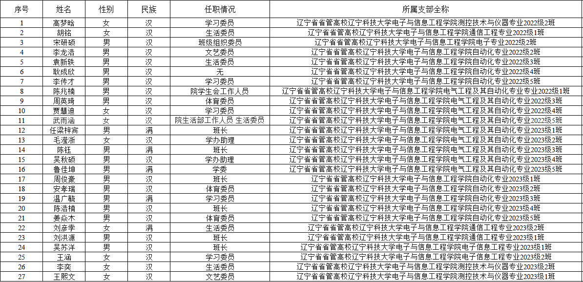 經(jīng)學院團委培養(yǎng)審查,擬接收高夢晗等二十七名同志為共青團員,現(xiàn)將具體情況公示如下。