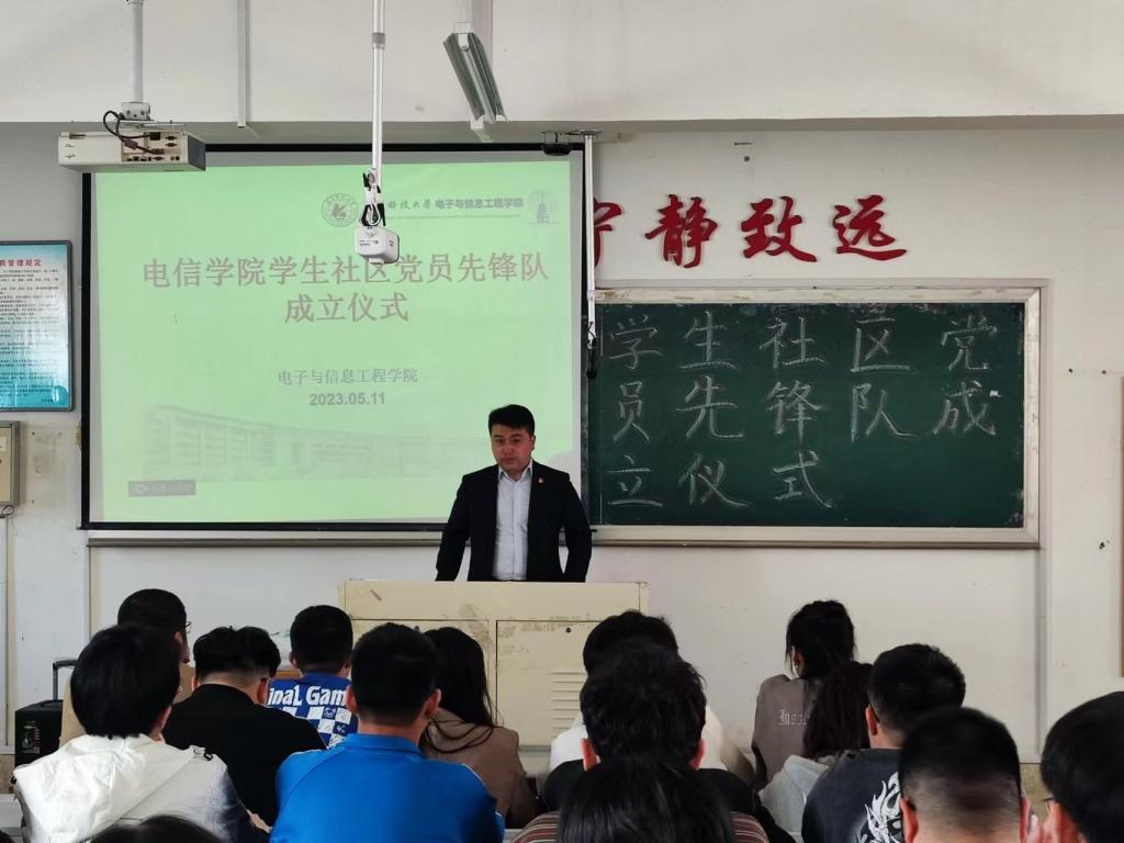 為深入學(xué)習(xí)貫徹習(xí)近平新時(shí)代中國特色社會(huì)主義思想,推進(jìn)學(xué)院“一站式”學(xué)生社區(qū)綜合管理模式建設(shè)工作,進(jìn)一步發(fā)揮青年學(xué)生黨員模范帶頭作用,引導(dǎo)廣大青年學(xué)生黨員在工作中當(dāng)先鋒、作表率,以實(shí)際行動(dòng)踐行初心使命。電信學(xué)院于5月11日在博聞樓九合舉行學(xué)生社區(qū)黨員先鋒隊(duì)成立儀式。活動(dòng)由電信學(xué)院黨委副書記由濟(jì)愷主持,學(xué)院全體學(xué)生黨員參加。