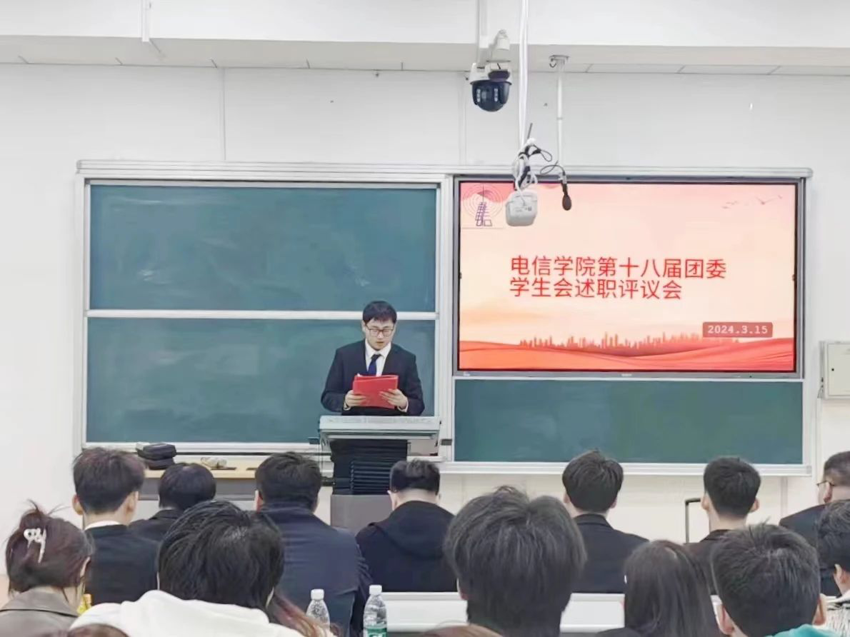 3月15日,電信學院第十八屆團委學生會述職評議會議在博聞樓一合召開。此次會議由辦公室負責人王藝雄主持,團工作負責人孫文鵬以及全體學生骨干參加。