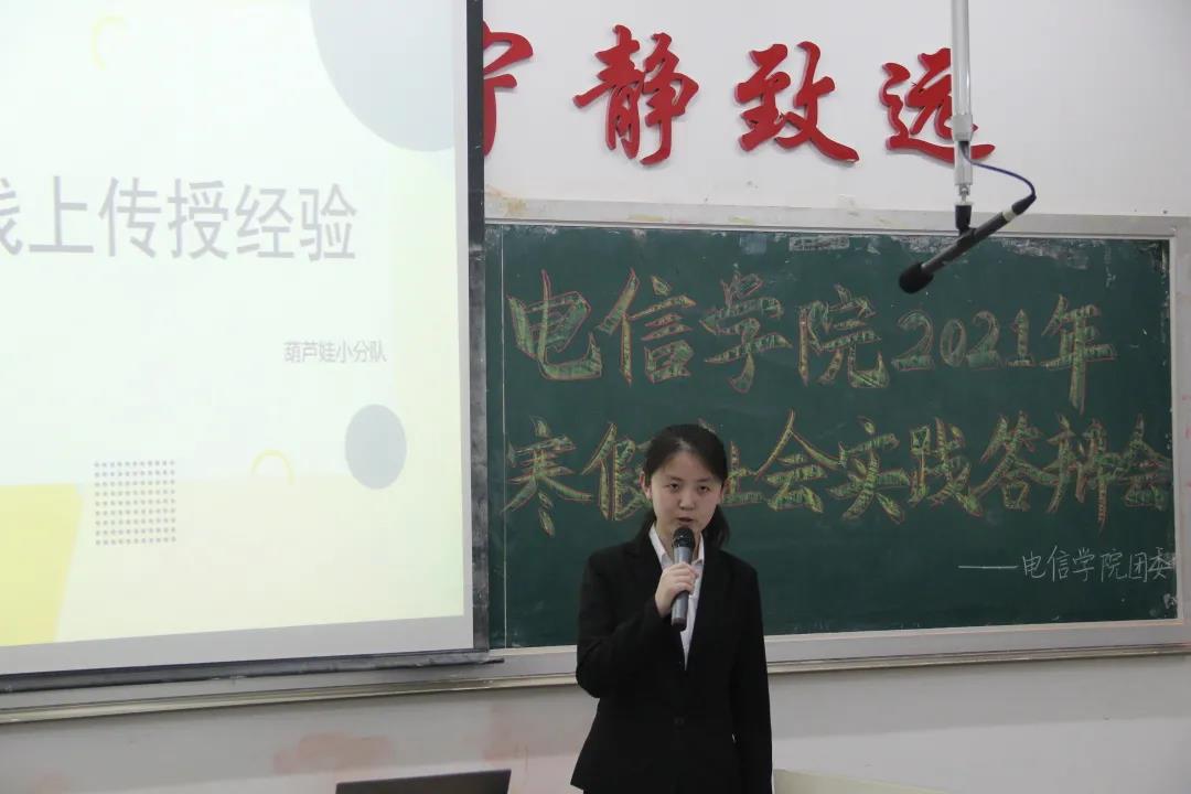 3月26日晚,電信學(xué)院于博聞樓九合組織開展主題為“把我的大學(xué)帶回母校”寒假社會實(shí)踐答辯會。此次答辯會由學(xué)生骨干張育瑋主持,團(tuán)委書記孫倩及2020級學(xué)生代表參加。