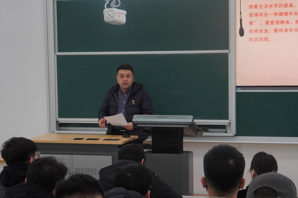 本次活動分為三個環節,首先由輔導員于家鵬老師做“雷鋒精神”主題報告。報告分別從集體觀看雷鋒剪影、介紹雷鋒生平簡介、領學雷鋒日記三個部分將雷鋒短暫而光輝的一生翔實再現。隨后,電信學院黨委副書記由濟愷作總結講話,由濟愷表示,隨著生活水平提高,物質生活的豐富,今天的我們雖然不再像當年的雷鋒同志一樣縫縫補補,但我們青年學子仍要時刻牢記“成由勤儉敗由奢”;要愛惜糧食,拒絕浪費;要消費合理,拒絕攀比;要吃苦在前,拒絕安逸;要傳承中華民族優良傳統,共同營造勤儉節約、積極健康的校園氛圍。最后全體黨員走出教室開展志愿服務,圍繞電信樓清理白色垃圾及清掃實驗室,美化校園環境,發揚“不怕苦、不怕臟、不怕累”的精神,充分展現新時代黨員的信仰與擔當。