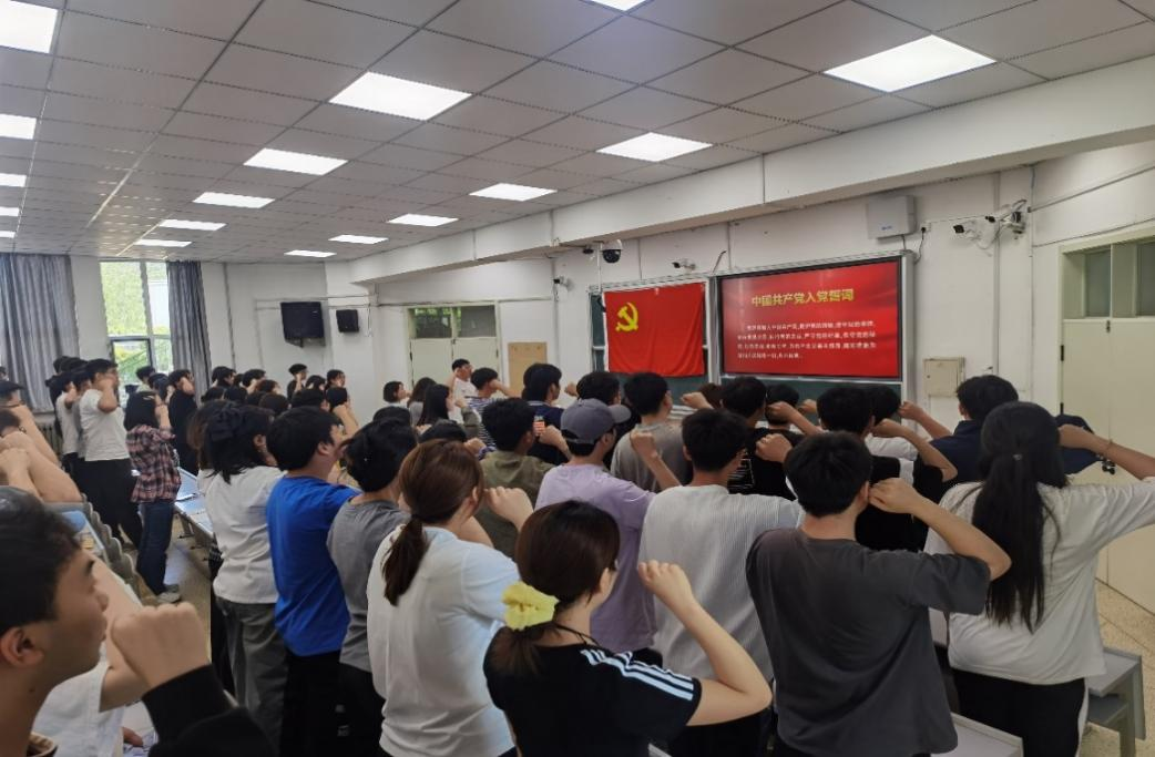 首先,全體畢業生黨員一起重溫入黨誓詞。錚錚誓言,字字千鈞,喚醒了黨員們入黨時的初心與感動,也激勵著他們在未來無論遇到何種困難,都堅守承諾,永葆共產黨員政治本色。