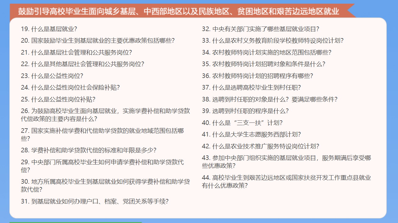 詳情點擊鏈接大學(xué)生就業(yè)創(chuàng)業(yè)政策百問 - 中華人民共和國教育部政府門戶網(wǎng)站 (moe.gov.cn)