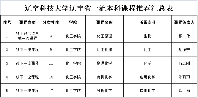 遼寧科技大學(xué)遼寧省一流本科課程推薦匯總表