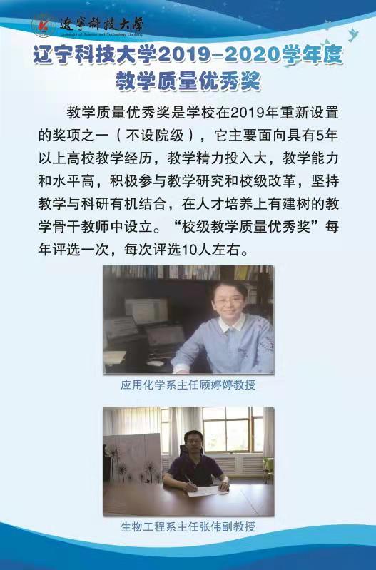 遼寧科技大學2019-2020學年度教學質量優秀獎
