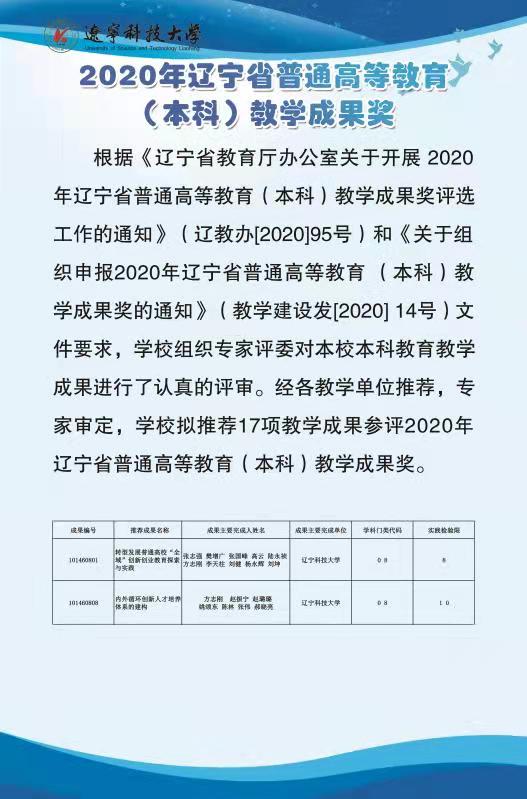 2020年遼寧省普通高等教育(本科)教學成果獎
