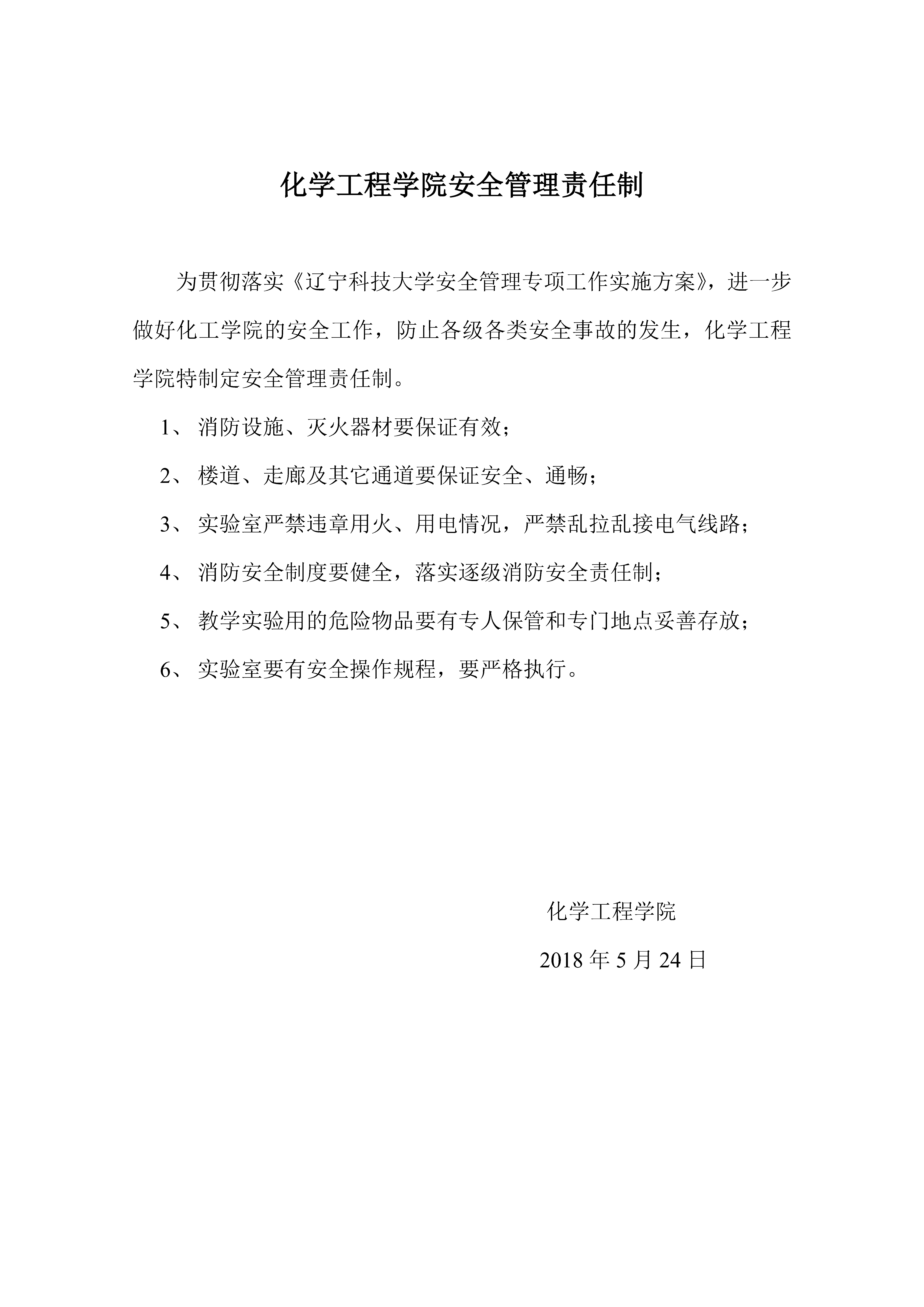 化學工程學院安全管理責任制