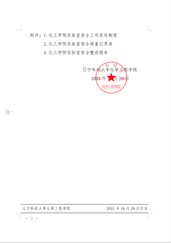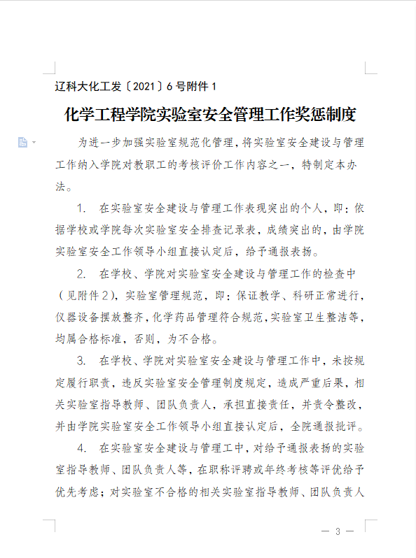 遼科大化工發〔2021〕6號 關于印發化學工程學院《化工學院實驗室安全管理獎懲制度》的通知.doc