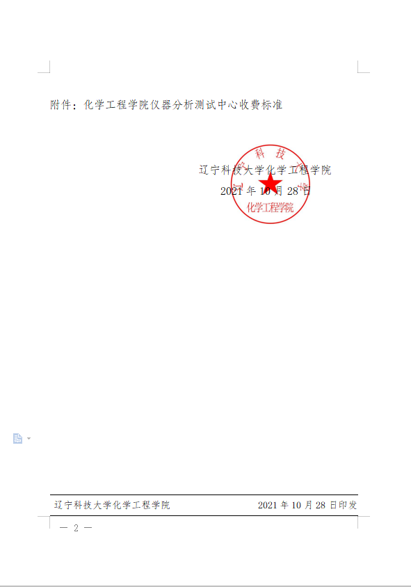 遼科大化工發〔2021〕7號 關于印發化學工程學院《提高大型、精密貴重儀器設備收費標準》的通知.doc