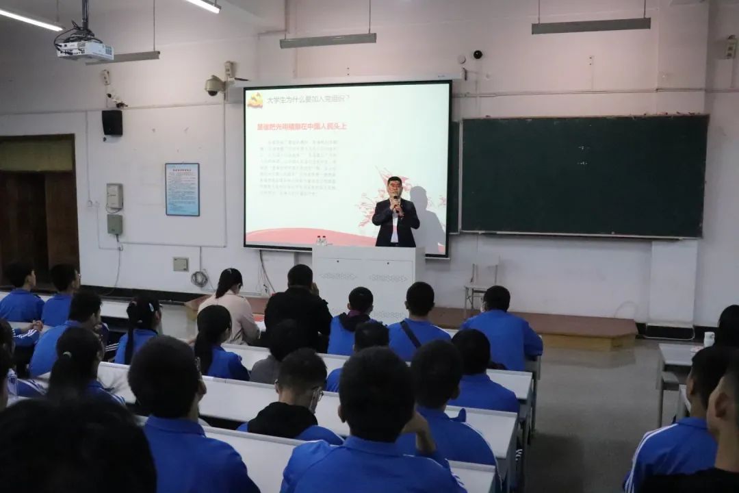 化工學(xué)院黨委書(shū)記董德的《“守初心 擔(dān)使命”入黨啟蒙教育》為新生做思想上的教育,同時(shí)引導(dǎo)2020級(jí)新生積極向黨組織靠攏,他從多個(gè)方面向表示黨的事業(yè)需要青年、青年的成長(zhǎng)離不開(kāi)黨的培養(yǎng)。他也指出當(dāng)代大學(xué)生存在的普遍問(wèn)題,希望各學(xué)生能夠以黨員的標(biāo)準(zhǔn)嚴(yán)格要求自己。