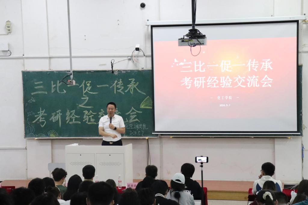 為加強(qiáng)學(xué)院學(xué)風(fēng)建設(shè),幫助同學(xué)們積極備考研究生,化工學(xué)院于5月7日在博學(xué)樓c302舉辦了三比一促一傳承之考研經(jīng)驗(yàn)交流會(huì)。學(xué)院輔導(dǎo)員、6名經(jīng)驗(yàn)分享同學(xué)及200余名同學(xué)參會(huì)。