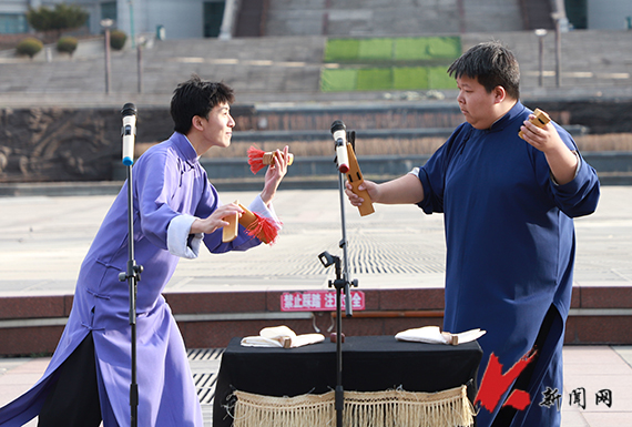 博雅廣場上充滿了歡聲笑語,由校團委主辦、相聲俱樂部承辦的以藝戰“疫”主題相聲大會在這里舉行。