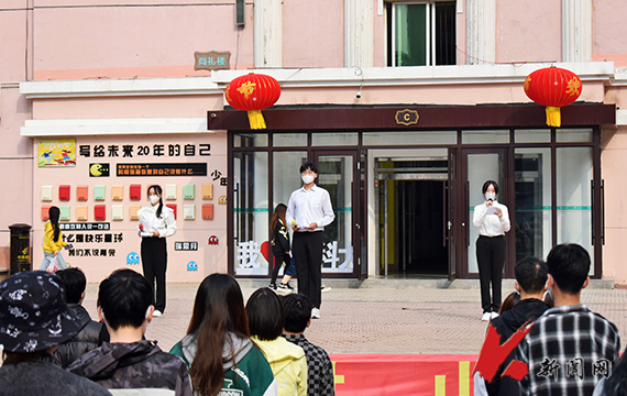 龍源公寓C座廣場歌聲飄揚,V-show舞團躍動的舞步青春洋溢。遼寧科技大學“戰‘疫’青年說”主題宣講會在這里舉行。