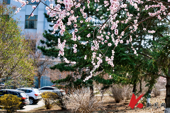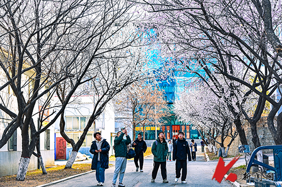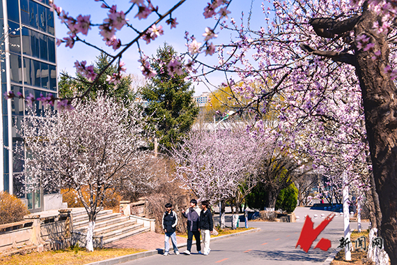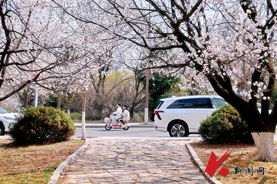 連翹金黃,櫻花如雪,——遼寧科技大學的春天從不遲到?!坝埠恕钡墓た圃盒E先崦来貉b,師生們在花香中奔赴課堂,構成了一幅獨特的遼科大春景圖。