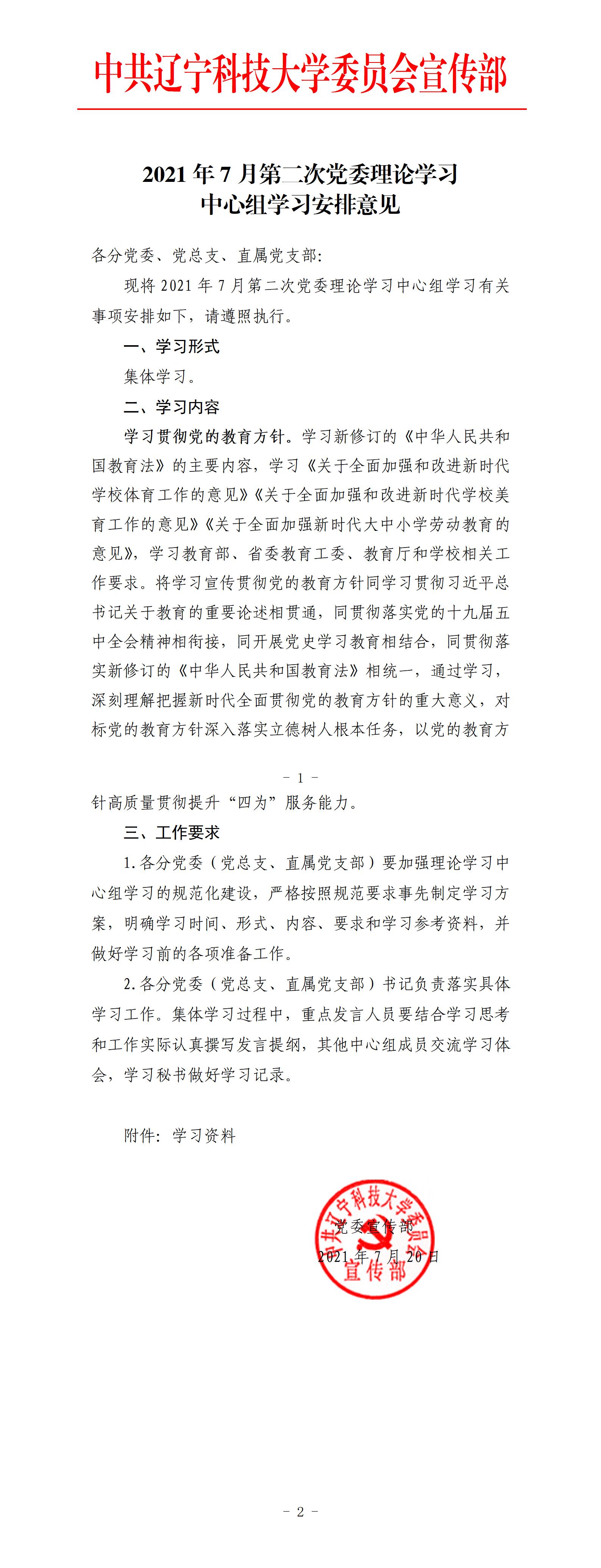 2021年7月第二次黨委理論學(xué)習(xí)中心組學(xué)習(xí)安排意見