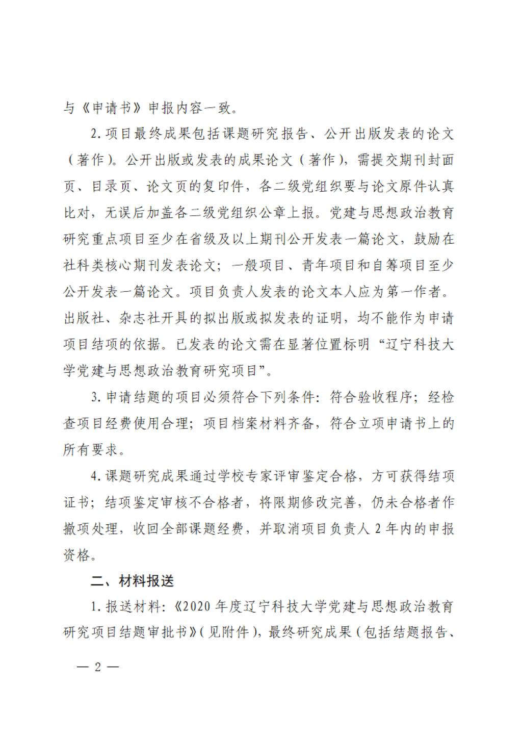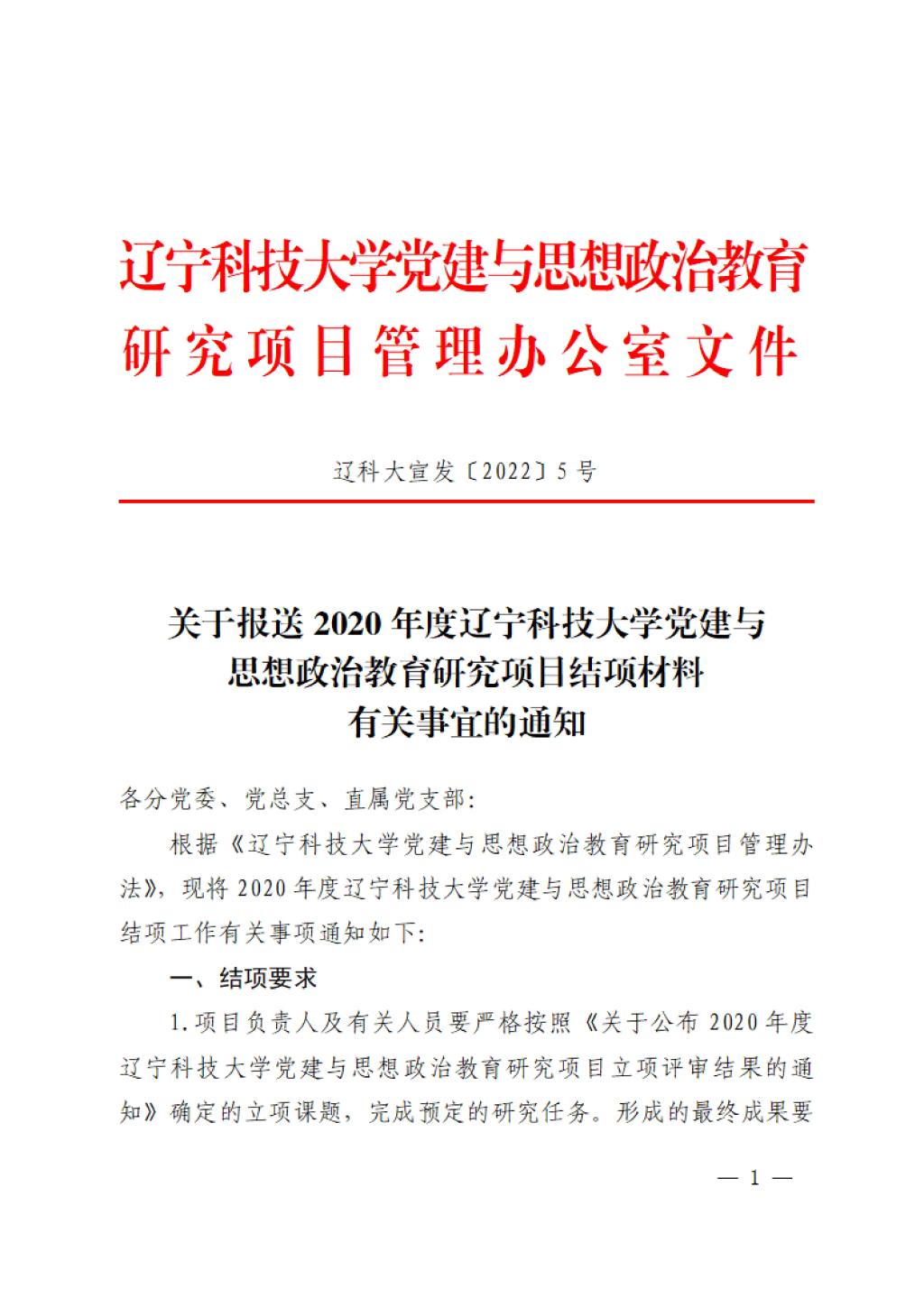 關(guān)于報(bào)送2020年度遼寧科技大學(xué)黨建與思想政治教育研究項(xiàng)目結(jié)項(xiàng)材料有關(guān)事宜的通知