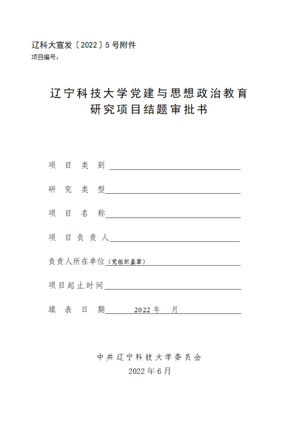 遼科大宣發(fā)〔2022〕5號(hào)附件 2020年度遼寧科技大學(xué)黨建與思想政治教育研究項(xiàng)目結(jié)題審批書.doc