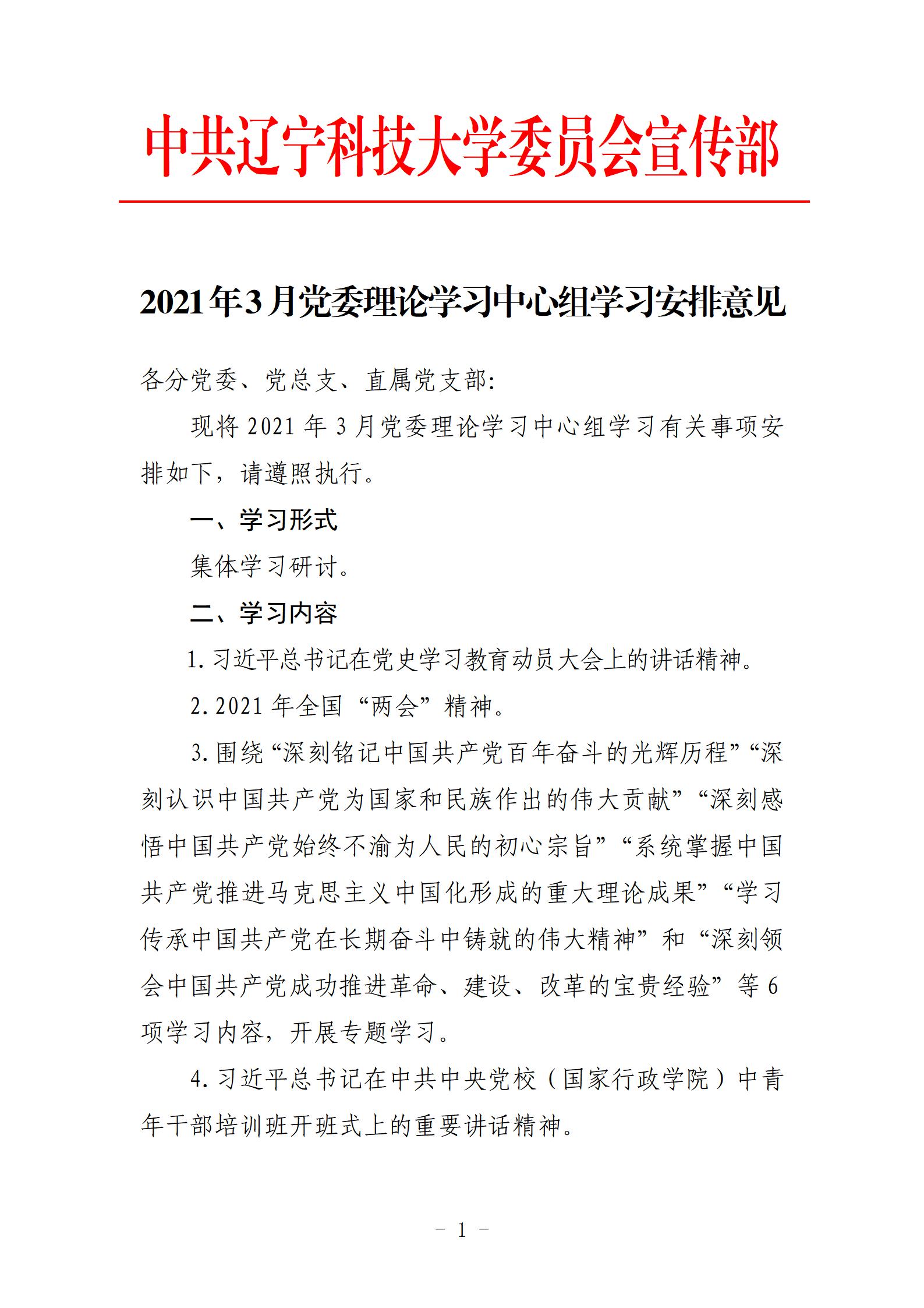 2021年3月黨委理論學(xué)習(xí)中心組學(xué)習(xí)安排意見