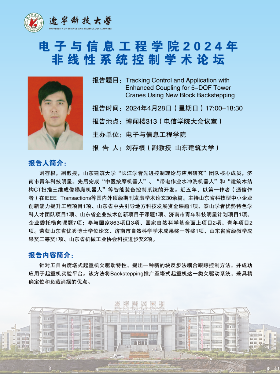 學術預告:Tracking Control and Application with Enhanced Coupling for 5-DOF Tower Cranes Using New Block Backstepping