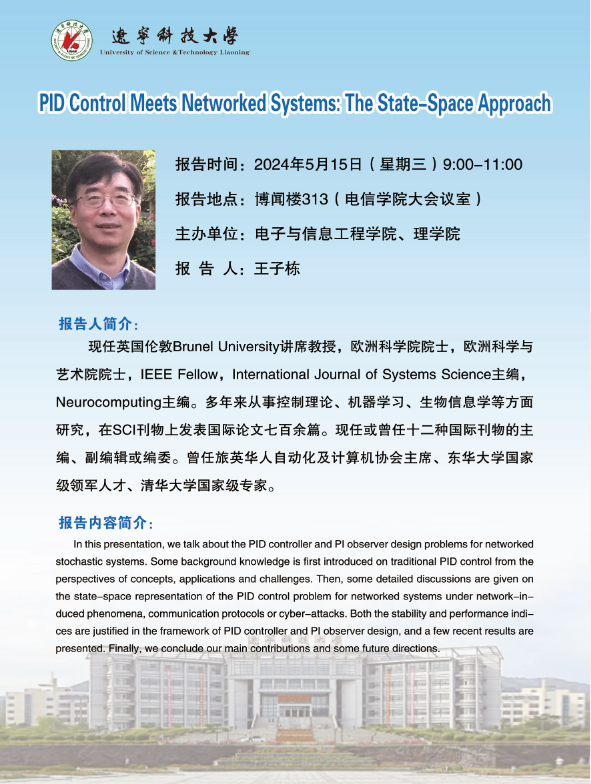 學(xué)術(shù)預(yù)告:PID Control Meets Networked Systems:The State-Space Approach