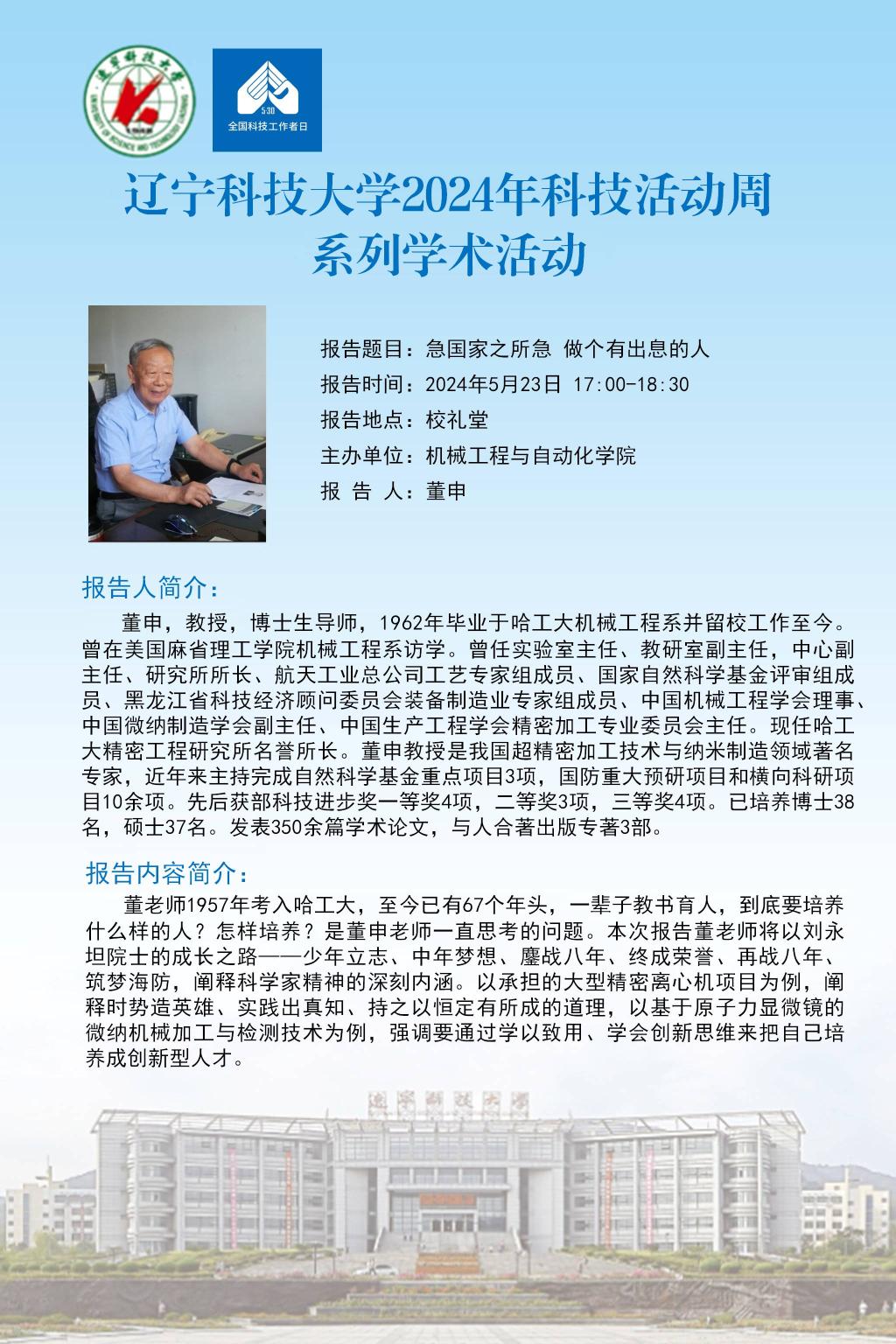 【科技活動(dòng)周學(xué)術(shù)預(yù)告】急國(guó)家之所急 做個(gè)有出息的人