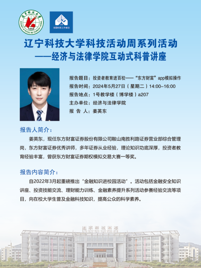 【科技活動(dòng)周學(xué)術(shù)預(yù)告】投資者教育進(jìn)百校——“東方財(cái)富”app模擬操作