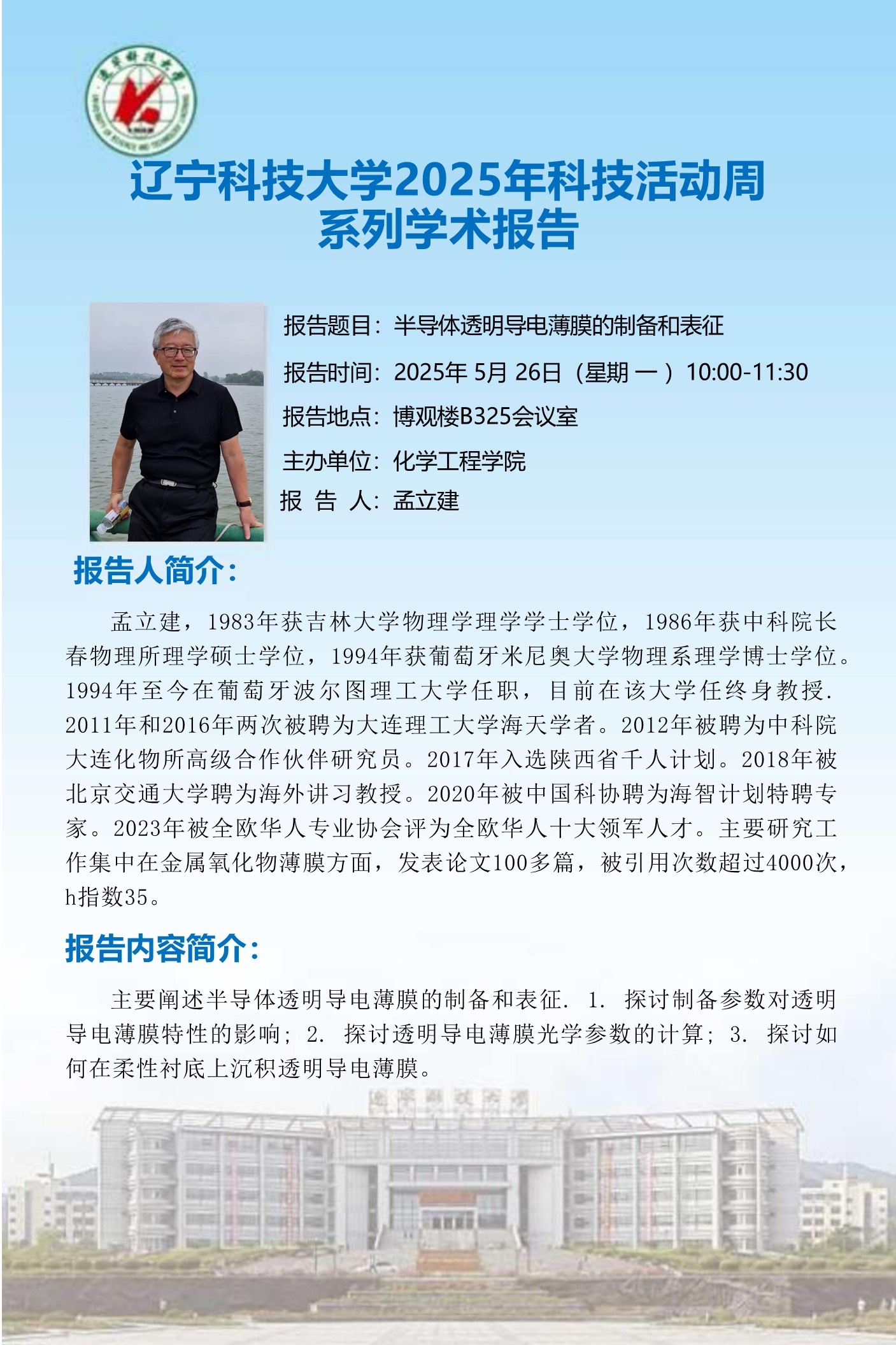 【科技活動(dòng)周學(xué)術(shù)預(yù)告】半導(dǎo)體透明導(dǎo)電薄膜的制備和表征