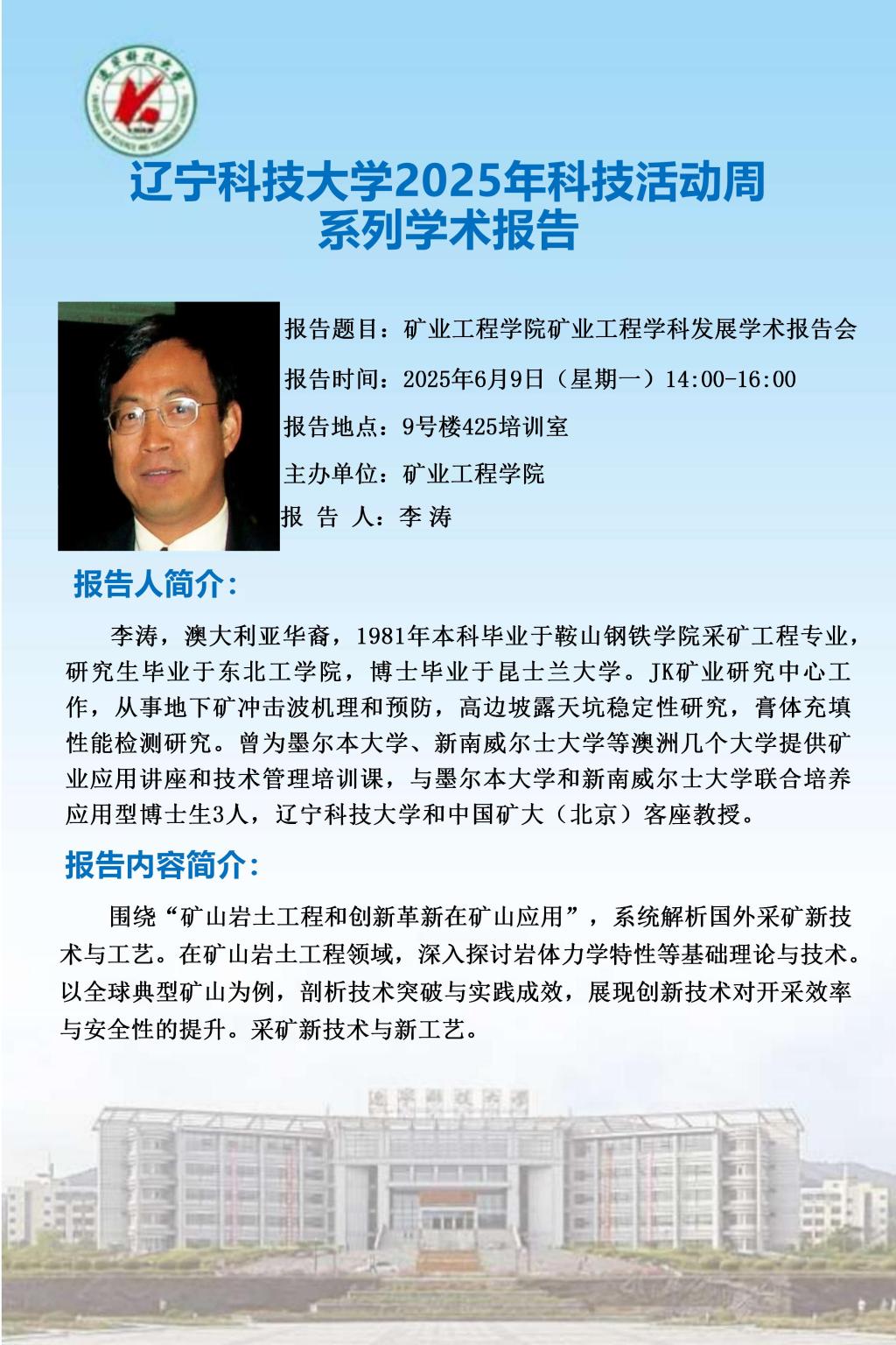 【科技活動周學術預告】礦業工程學院礦業工程學科發展學術報告會