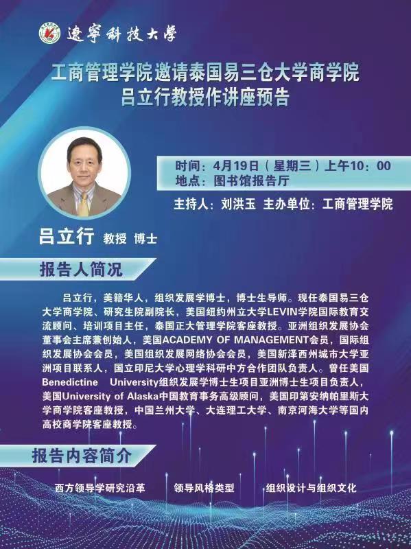 工商管理學院邀請泰國易三倉大學商學院呂立興教授作講座預告