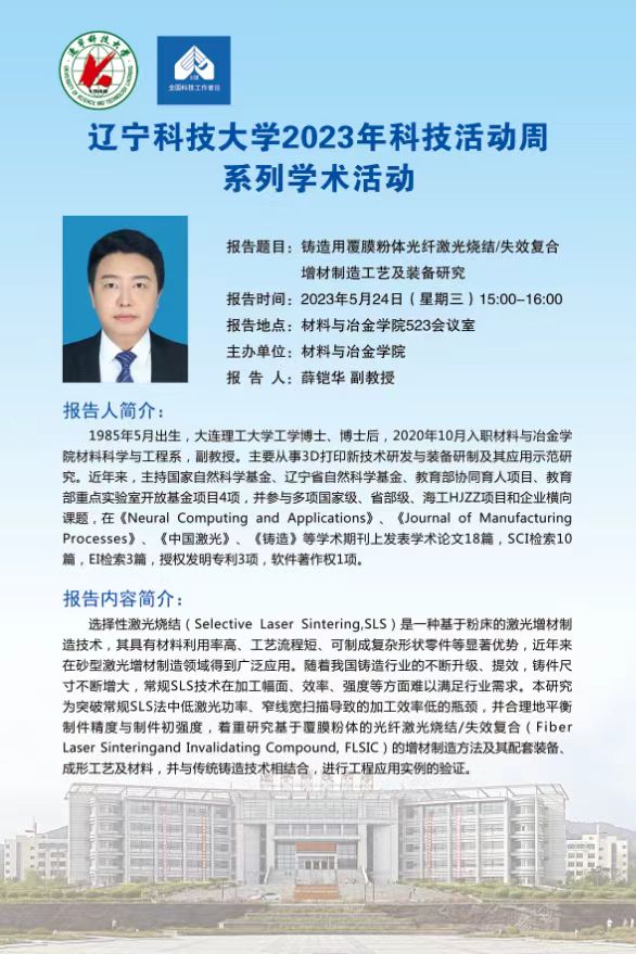 【科技活動(dòng)周學(xué)術(shù)預(yù)告】鑄造用覆膜粉體光纖激光燒結(jié)/失效復(fù)合增材制造工藝及裝備研究
