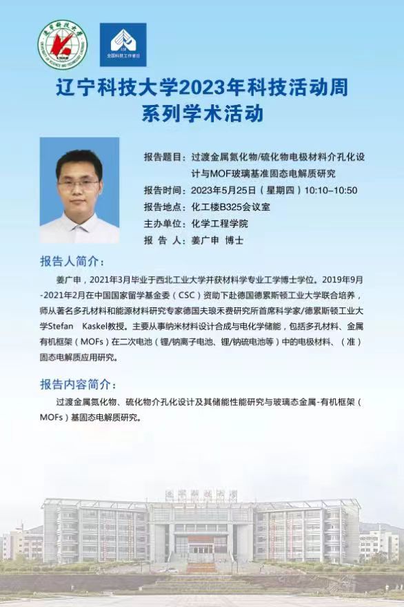 【科技活動周學術預告】過渡金屬氮化物/硫化物電極材料介孔化設計與MOF玻璃基準固態電解質研究