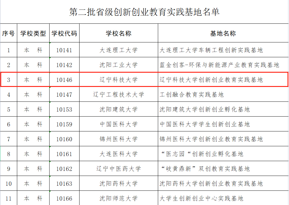 近日,遼寧省教育廳公布了第二批遼寧省省級創新創業教育實踐基地名單,遼寧科技大學創新創業教育實踐基地成功獲批第二批遼寧省省級創新創業教育實踐基地。