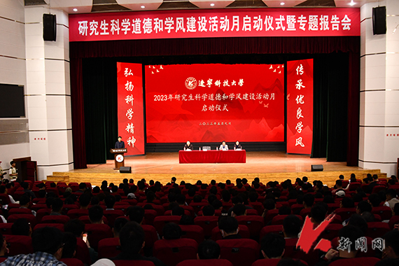 5月9日下午,遼寧科技大學(xué)2023年研究生科學(xué)道德和學(xué)風(fēng)建設(shè)活動(dòng)月啟動(dòng)儀式暨專題報(bào)告會(huì)在校禮堂舉辦。活動(dòng)月的主題為“弘揚(yáng)科學(xué)精神,傳承優(yōu)良學(xué)風(fēng)”。校黨委常委、副校長李勝利出席儀式、致辭并宣布活動(dòng)月正式啟動(dòng)。黨委研究生工作部(研究生院)全體人員,各學(xué)院研究生教育管理工作負(fù)責(zé)人、輔導(dǎo)員及2022級(jí)研究生參加儀式活動(dòng)。