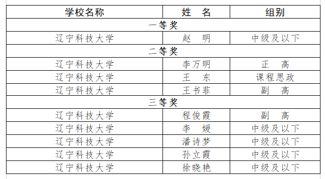 近日,2023年遼寧省高校教師教學創新大賽落下帷幕,遼寧科技大學1名教師獲得一等獎,3名教師獲得二等獎,5名教師獲得三等獎。一等獎獲得者材料與冶金學院趙明將代表遼寧賽區參加第三屆全國高校教師教學創新大賽。